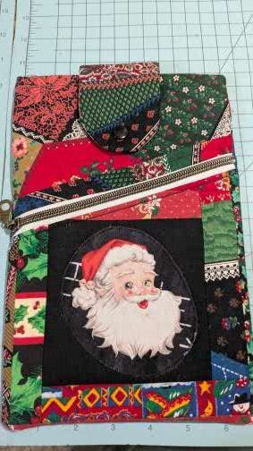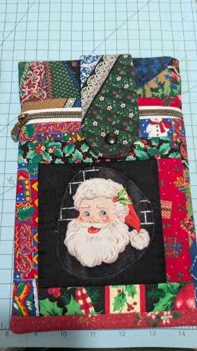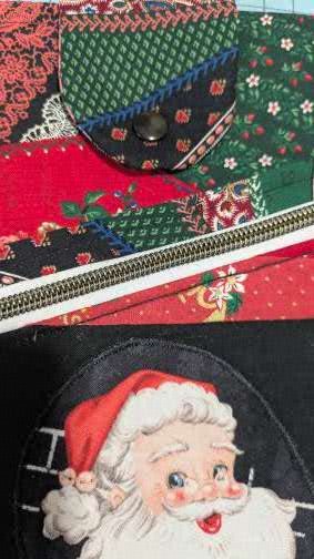 Protect your favorite reads in style with this handmade book sleeve, designed for book lovers of all ages. This sleeve features Christmas Colors Santa with Holly, Red, Green, Black and Gold, #5 zipper pocket, one slip pocket, and a secure inside pocket with a snap protector tab.